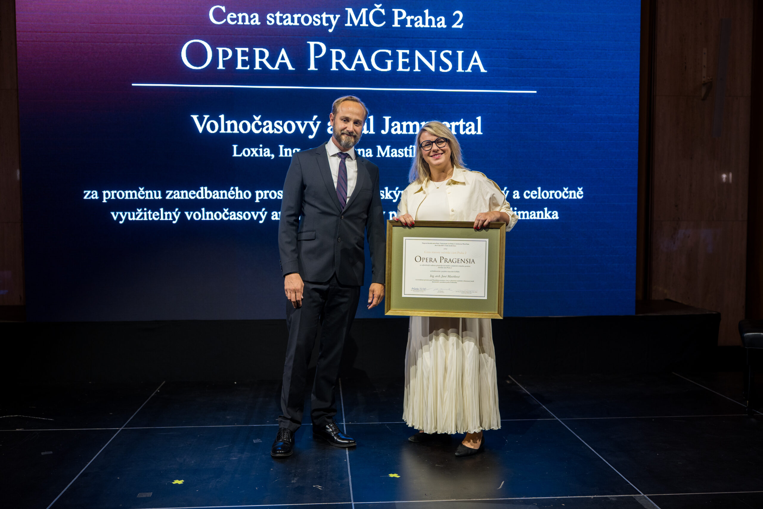 Cena starosty městské části Praha 2 Jana Korsesky Opera Pragensia byla udělena za volnočasový areál Jammertal v parku Folimanka, který realizovala architektonická a projekční kancelář LOXIA a.s. pod vedením Ing. arch. Jany Mastíkové. Projekt byl oceněn za proměnu zanedbaného prostoru pod Nuselským mostem v živý a celoročně využitelný volnočasový areál.
