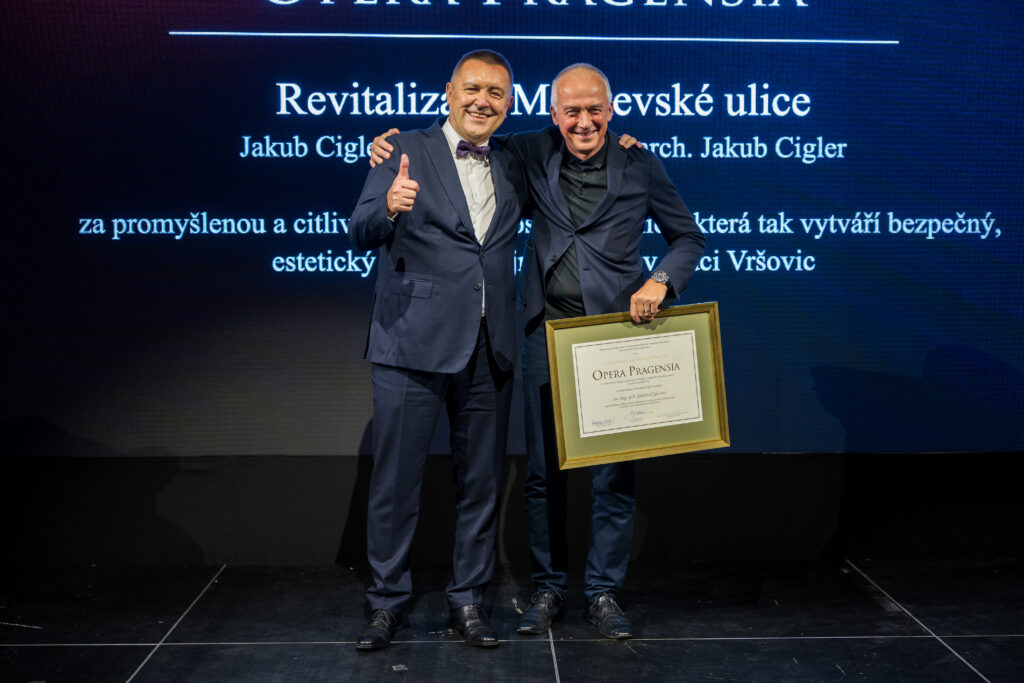 Cena starosty městské části Praha 10 Ing. arch. Martina Valoviče Opera Pragensia byla udělena za revitalizaci Moskevské ulice, kterou realizovalo architektonické studio Jakub Cigler Architekti pod vedením doc. Ing. arch. Jakuba Ciglera. Projekt byl oceněn za promyšlenou a citlivou obnovu hlavní městské třídy Vršovic, která se díky modernímu řešení stala bezpečným, estetickým a živým veřejným prostorem.